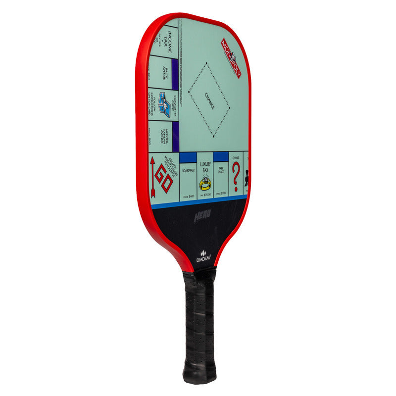 Built on the trusted DIADEM HERO PADDLE, this kit is perfect for first-time players looking to level up. The Hero’s wide face gives you maximum surface area as you learn the game, while its lightweight HMT fiber construction keeps every swing smooth and easy. A thicker bumper adds durability during your early days on the court—so go ahead, take risks, roll the dice, and play bold. With the Monopoly Hero Kit, you’re not just learning pickleball… you're building an empire one point at a time.